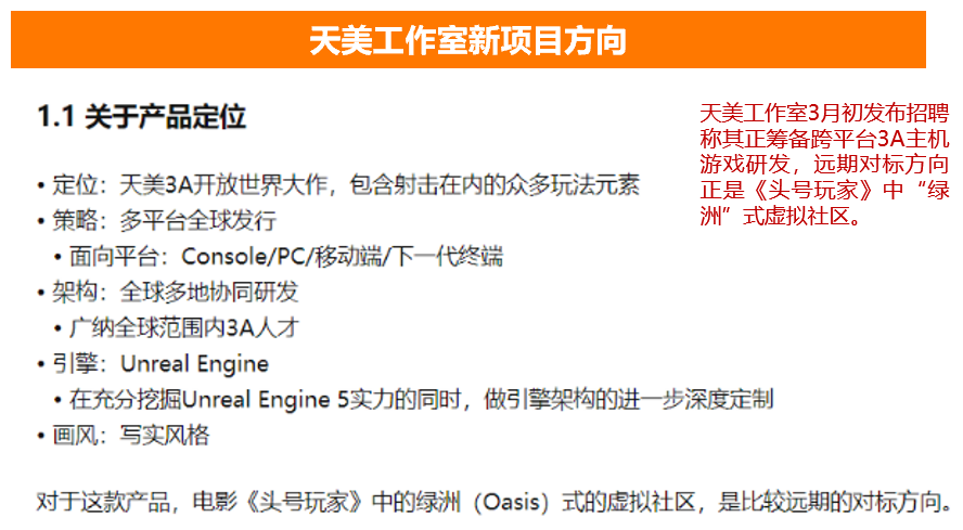 腾讯天美工作室:3A级开放世界,远期目标对标《头号玩家》里的“绿洲”;