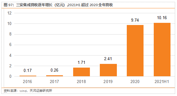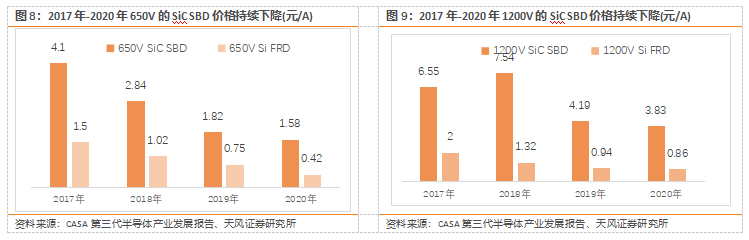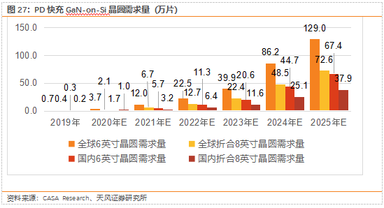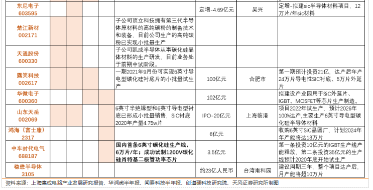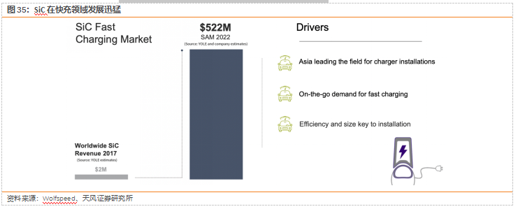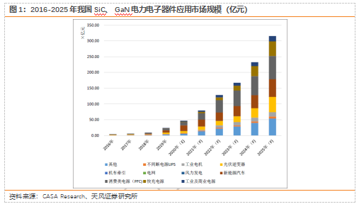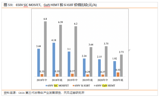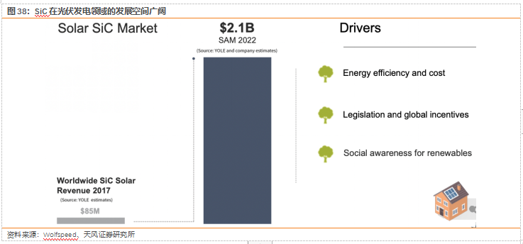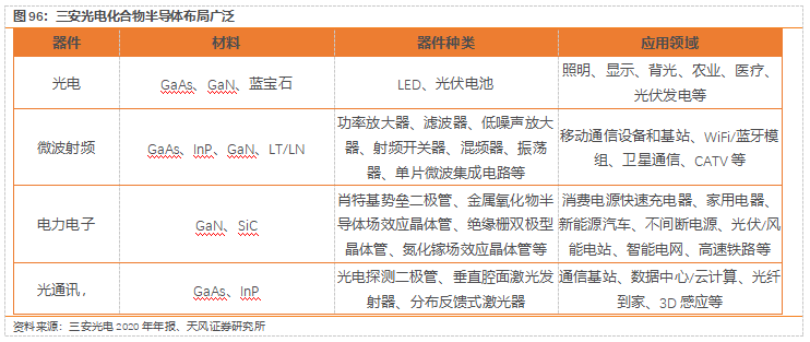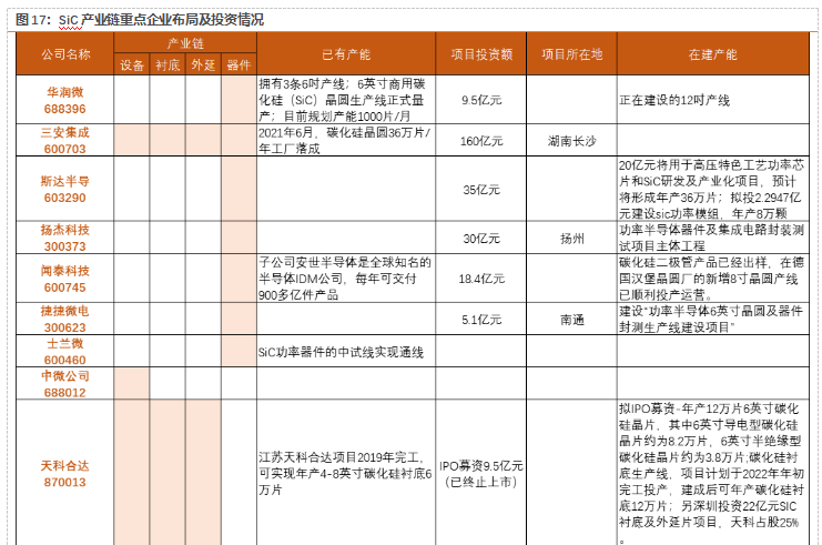 1.核心因素驱动:下游应用迭起+绿色能源需求+后摩尔时代驱动第三代半导体大发展1)下游应用迭起,第三代半导体因物理性能优异竞争力极强新能源汽车等下游应用需求高起带动第三代半导体在大功率电力电子器件领域起量。快充装置、输变电系统、轨道交通、电动汽车和充电桩等都需要大功率、高效率的电力电子器件,基于SiC、GaN的电子电力器件因其物理性能优异在相关市场备受青睐。AIoT时代,智慧化产品渗透率将迅速提升,智能家居照明的商机空间广阔。GaN在蓝光等短波长光电器件方面优势明显。5G时代驱动GaN射频器件快速发展。GaN器件工作效率和输出功率优异,成为5G时代功率放大器主要技术。2) 绿色能源需求迫在眉睫,第三代半导体助力 “碳达峰 、碳中和 ”目标实现第三代半导体有望成为绿色经济的中流砥柱,助力光伏、风电,直流特高压输电,新能源汽车、消费电源等领域电能高效转换,推动能源绿色低碳发展。举例来看,若全球采用硅芯片器件的数据中心都升级为GaN功率芯片器件,将减少30-40%的能源浪费,相当于节省了100兆瓦时太阳能和减少1.25亿吨二氧化碳排放量。3)后摩尔时代来临,新材料新架构的创新支撑各类新应用蓬勃发展,其中第三代半导体为代表的核心材料是芯片性能的提升的基石材料工艺是芯片研发的主旋律。SiC、GaN拥有高的击穿电场强度、高工作温度、低器件导通电阻、高电子密度等优势,在后摩尔时代极具潜力。2. 供需测算:产业链各环节产能增长,但供给仍然不足我国产线陆续开通,第三代半导体领域6英寸8英寸尺寸晶圆渐成主流。截至 2020年底,国内约有 8条SiC制造产线,10条正在建设。7条 GaN-on-Si产线,4条正在建设。供给端:我国2020年SiC导电型衬底产能(折合6英寸)约18万片,外延22万片,Si基GaN外延约28万片。需求端:测算2025年我国仅新能源汽车板块就需75万片等效SiC 6寸晶圆, 仅快充部分就需要67万片GaN相关晶圆,现有产能与需求差距较大,如不在2025年前加速扩产,供给会持续紧缺。3. 成本测算:与传统产品价差持续缩小,综合成本优势大于传统硅基SiC、GaN器件与传统Si基产品价差持续缩小。1) 上游衬底产能持续释放,供货能力提升,材料端衬底价格下降,器件制造成本降低; 2) 量产技术趋于稳定,良品率提升,叠加产能持续扩张,拉动市场价格下降; 3) 产线规格由4英寸转向6英寸, 成本大幅下降。未来SiC、GaN综合成本优势显著,可通过大幅提高器件能效+减小器件体积使其综合成本优势大于传统硅基材料,看好第三代半导体随着价格降低迎来大发展。投资建议:看好下游应用迭起+绿色能源需求+后摩尔时代驱动下第三代半导体大发展,推荐前瞻布局+高质量研发第三代半导体的优质龙头企业,推荐三安光电/闻泰科技/立昂微;关注斯达半导/华润微/士兰微/纳微半导体/华虹半导体/新洁能/扬杰科技/赛微电子/捷捷微电/华微电子/时代电气/天岳先进/凤凰光学/宏微科技风险提示:产业政策变化、国际贸易争端加剧、下游行业发展不及预期![]()