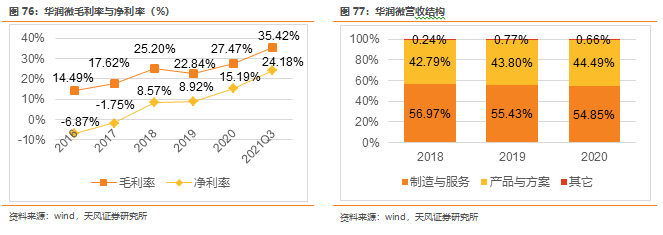 1)产品与方案板块:聚焦功率半导体、智能传感器,核心技术自主研发国内领先。公司产品与方案业务板块聚焦于功率半导体、智能传感器与智能控制领域,处于国内领先地位,2020和2021H1分别实现营收31.04、20.44亿元,同比增长分别为23.37%、49.31%。其中,根据2020半年报,分立器件为产品与方案板块主要产品,占该板块整体营收的76.9%。