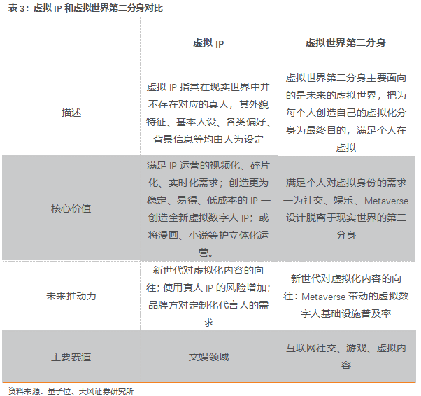 根据人格象征,虚拟数字人可分为虚拟IP和虚拟世界第二分身