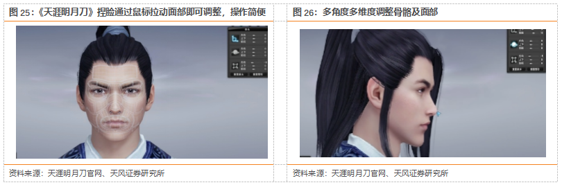 国内头部游戏厂商已具有数字人自动生成技术沉淀,游戏捏脸成熟简便。在对于游戏内虚拟角色的设定以外,厂商亦重视玩家自身虚拟化身的打造。以中国主流MMORPG类型游戏为例,腾讯《天涯明月刀》及网易《逆水寒》均在玩家捏脸以及角色画面呈现上有先进优势。
