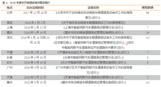 主要有摄像头、雷达、激光和超声波等,可以探测光、热、压力或其它用于监测汽车状态的变量,通常位于车辆的前后保险杠、侧视镜、驾驶杆内部或者挡风玻璃上。高频率数据传输需求。不断增加的传感器数量带来车载数据量激增,促使 ADAS 配备更高带宽的传输网络。据 Intel 测算,自动驾驶车辆每天将产生超过 4T 的数据量。1.3. L3-L5自动驾驶:车联网全方位感知补足单车智能短板L3是自动驾驶系统的一个分水岭,前面是以驾驶员为责任主体,机器为辅助;后面是机器为责任主体,驾驶员逐渐脱离驾驶任务。国家工信部公示标准中将L3定性为“限定条件下的自动化”:在自动驾驶系统所规定的运行条件下,车辆本身就能完成转向和加减速,以及路况探测和反应的任务;一些条件下司机可以将驾驶权完全交由自动驾驶车辆,但在必要时需要进行接管。换言之,在L3级自动驾驶状态下,驾驶员不光可以“脱手”“脱脚”,还可以“脱眼”,即不用时刻监管车辆,只需保持能动态接管驾驶任务。伴随着自动驾驶智能度的提升,单车智能或无法完全满足车辆应对环境复杂性和满足自身安全性的诉求。1.4. 行业发展进度:多城市试点,L3汽车发布在即伴随着技术和基础设施的成熟,实验数据的不断丰富,相关政策也在逐步跟上。近年来,中国和国外政府已纷纷出台了自动驾驶的产业扶持和上路实验的政策。欧盟委员会发布《通往自动化出行之路:欧盟未来出行战略》,提出到2030年将会普及完全自动驾驶。瓜熟蒂落:L3 车型预计量产。在 19 年上海车展期间,L3 级自动驾驶汽车来到了台前。无论是小鹏、威马、零跑等新造车势力,还是大众、BBA、北汽、上汽、广汽等传统车企,都亮出了自家的 L3 级自动驾