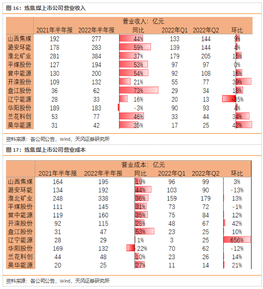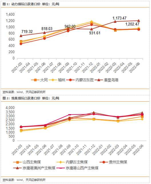 2022年上半年动力煤平均同比上涨55%,炼焦煤平均同比上涨79%;