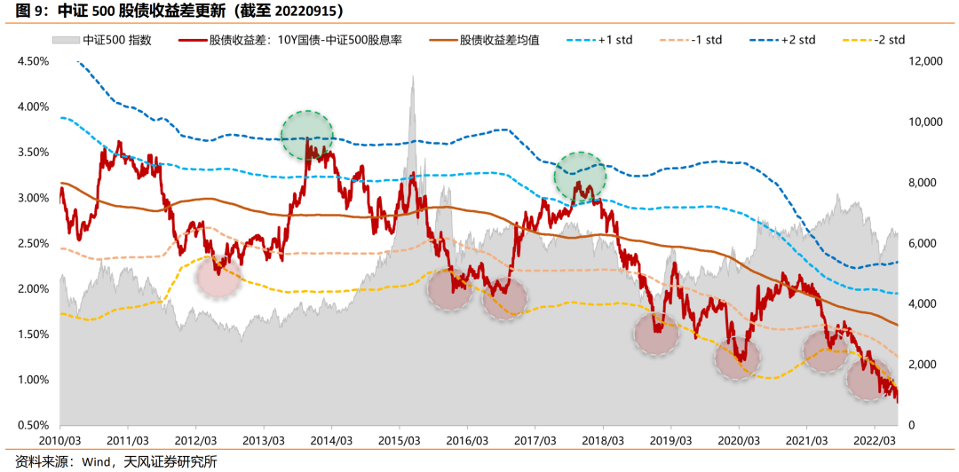 (3)上一次中证500股债收益差接近-2X标准差位置是在2021年7月底,之后反弹幅度+15.5%(7/9-9/13日)。详见《重要信号:中证500股债收益差已接近极值》。