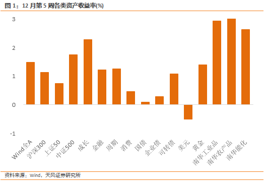 12月第5周,美股指数小幅下跌。Wind全A上涨1.48%,日均成交额小幅下跌至6328.27亿元。30个一级行业中23个行业实现上涨,电力设备及新能源、国防军工和电力及公用事业表现靠前;家电、消费者服务和房地产表现靠后。信用债指数小幅上涨0.10%,国债指数小幅上涨0.29%。2023年1月第1周各大类资产性价比和交易机会评估:债券——跨年流动性环境中性偏紧,元旦节后大概率重回中性偏松区间风险提示:出现致死率提升的新冠变种;经济复苏斜率不及预期;货币政策超预期收紧。