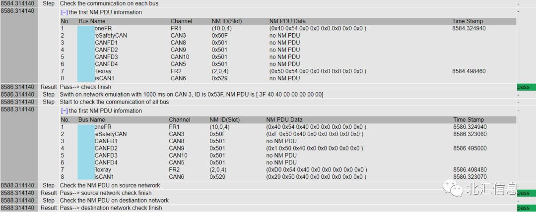 因此必须要有新的思路和方法,北汇在长期工程实践中积累了特有的方案,借助于Vector公司的CANoe所提供灵活而强大的函数库,实现了对上述问题的“解耦”,从而解决这个“老大难”。如下为使用新方法,在CANoe环境下开发测试工程并自动生成的针对部件和系统级的测试报告。