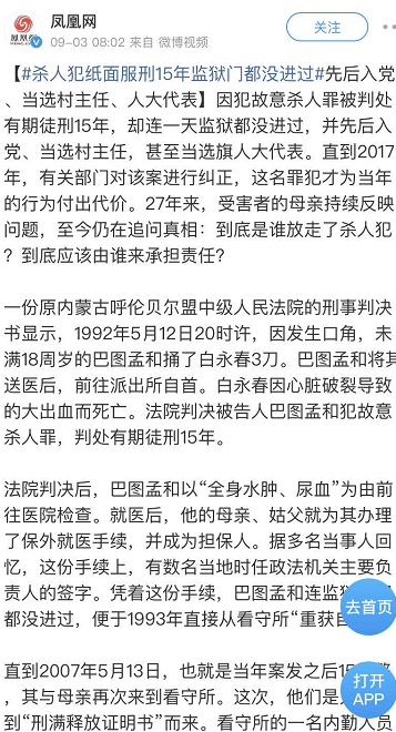这两天,有一则新闻在热传,那就是一名杀人犯,竟然纸面服刑15年,根本没进过监狱,先后入党、当选村主任、人大代表被害人母亲27年讨不来公道。