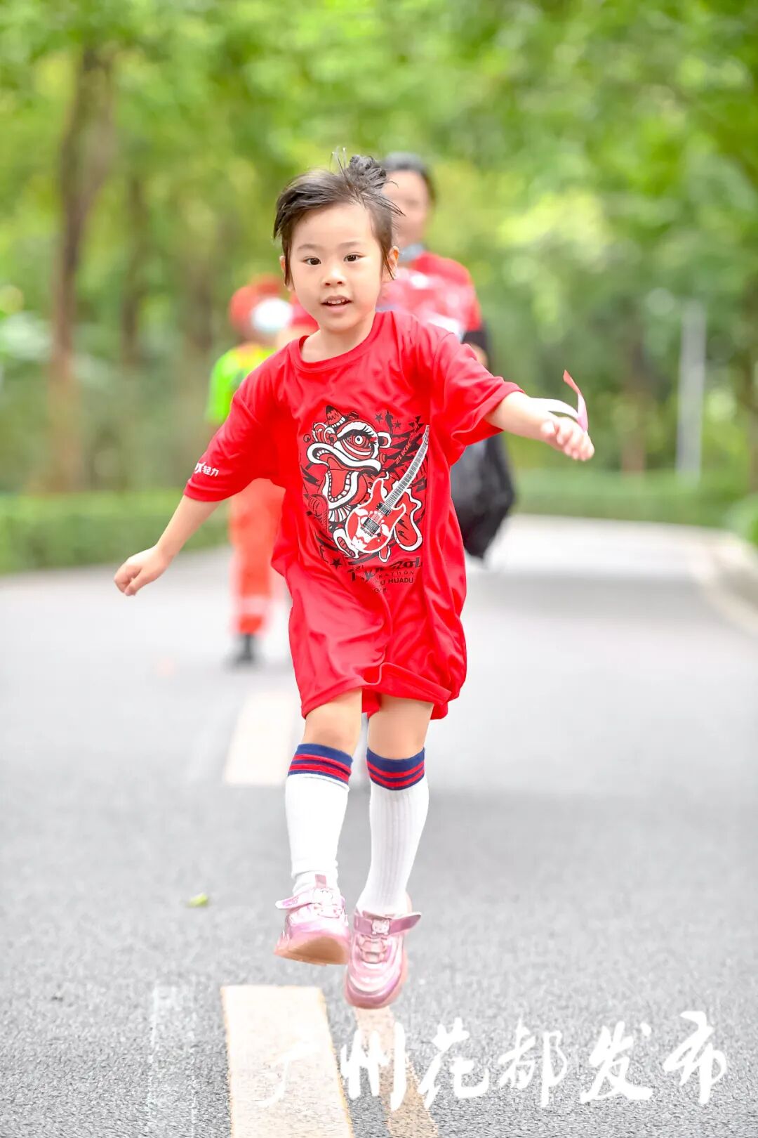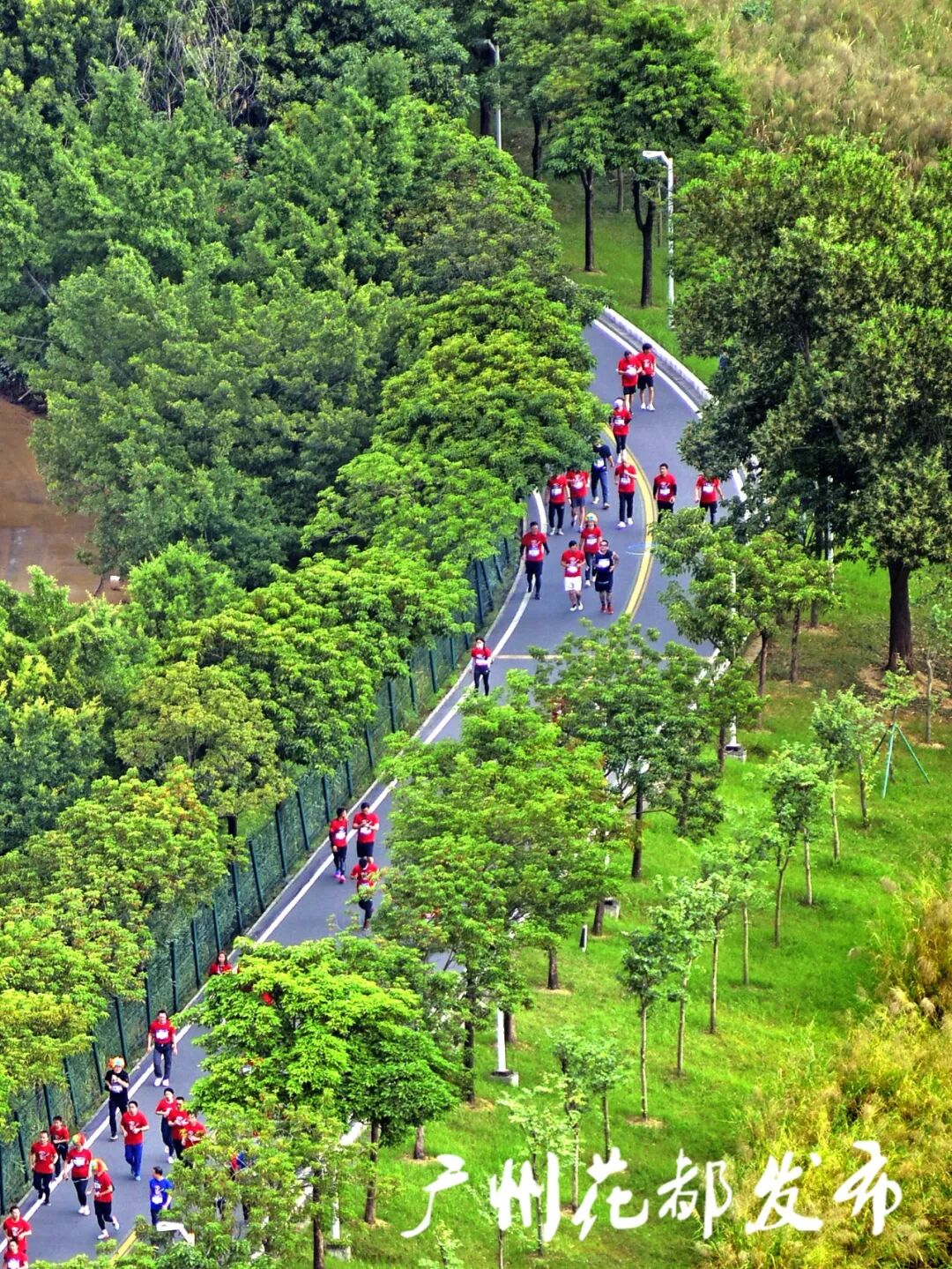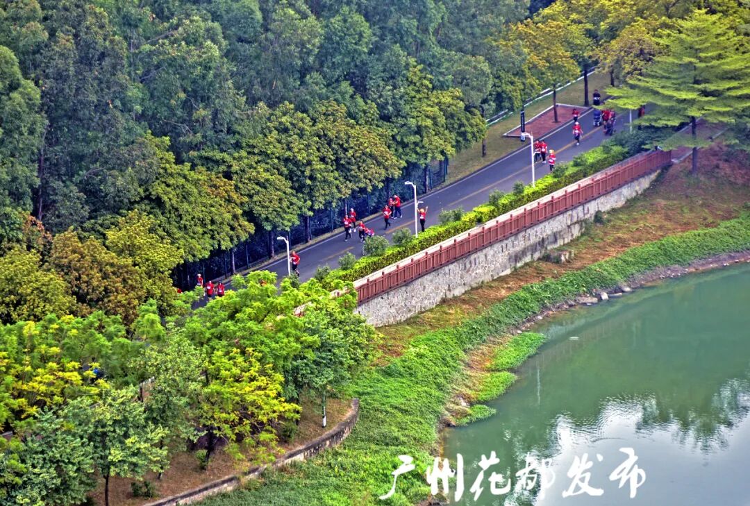 选手们以奔跑的姿态,感受花都风情。