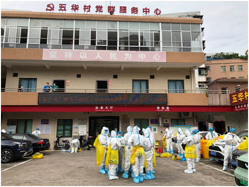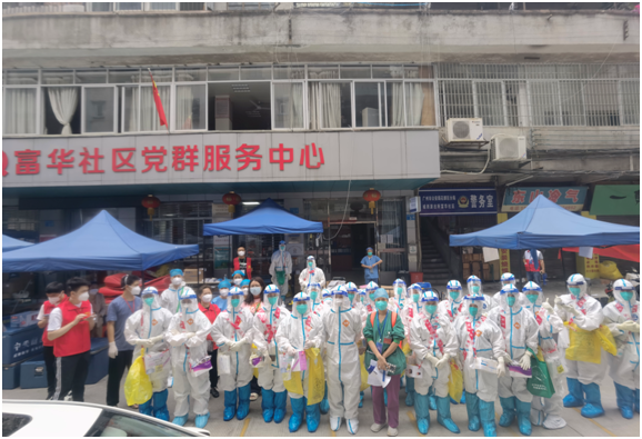 ▲越秀区突击队在老城区“逐门进、逐人过”扫楼做核酸采样。