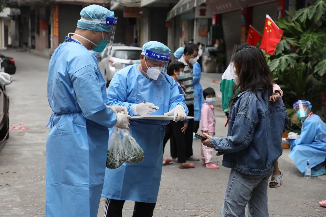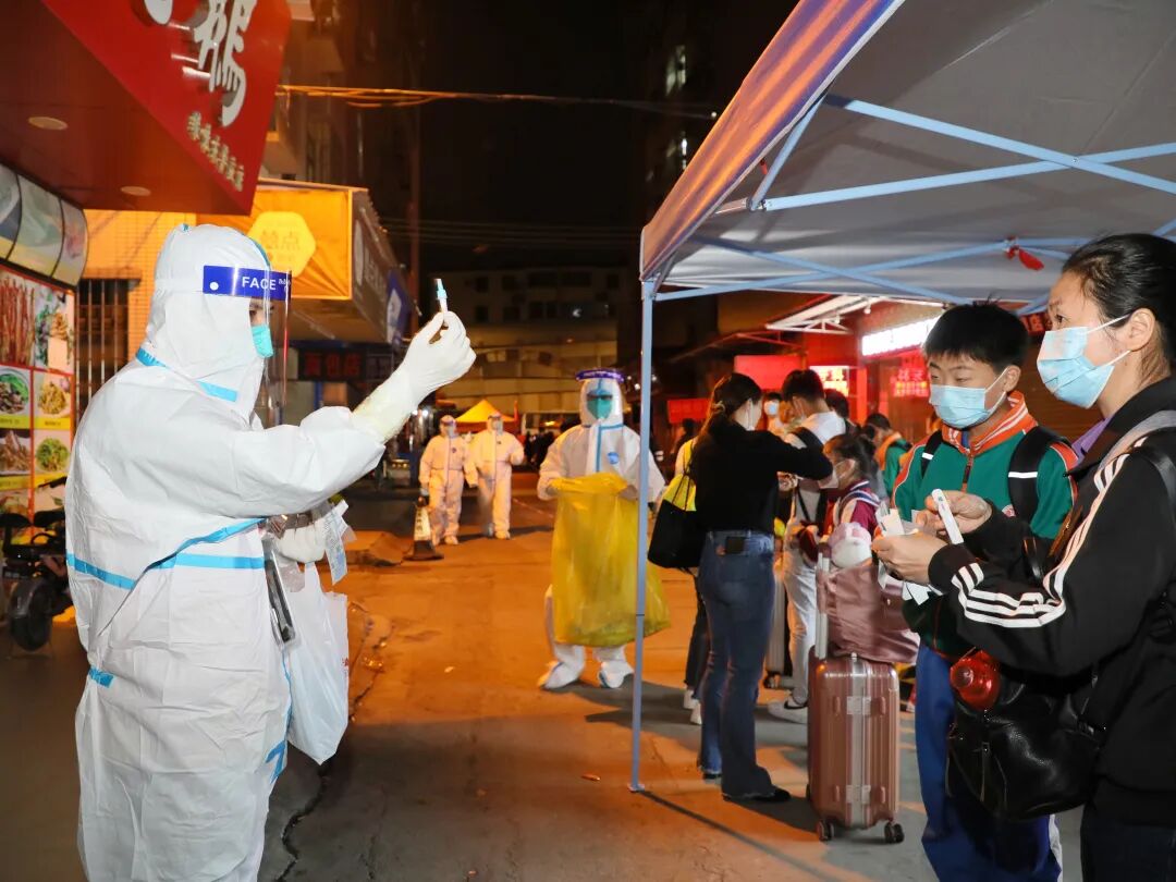 在核酸检测环节,东华庄都是握手楼、蜈蚣巷,且人数庞大,不能直接在巷子里拉出一条长队,所以,核酸采样队伍需要逐条小巷地喊话,先让一条小巷两侧的居民下来做核酸,再到另一条小巷去,依次往下做,尽可能地减少人员聚集。