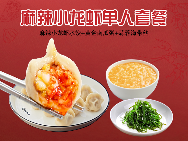 还有特别推出的麻辣小龙虾水饺套餐🦞,仅需50.7元,一口下去虾肉大满足,麻辣够味儿还保留了海鲜的鲜甜,配上一碗热乎乎的南瓜粥和爽脆海带丝,暖心又开胃~