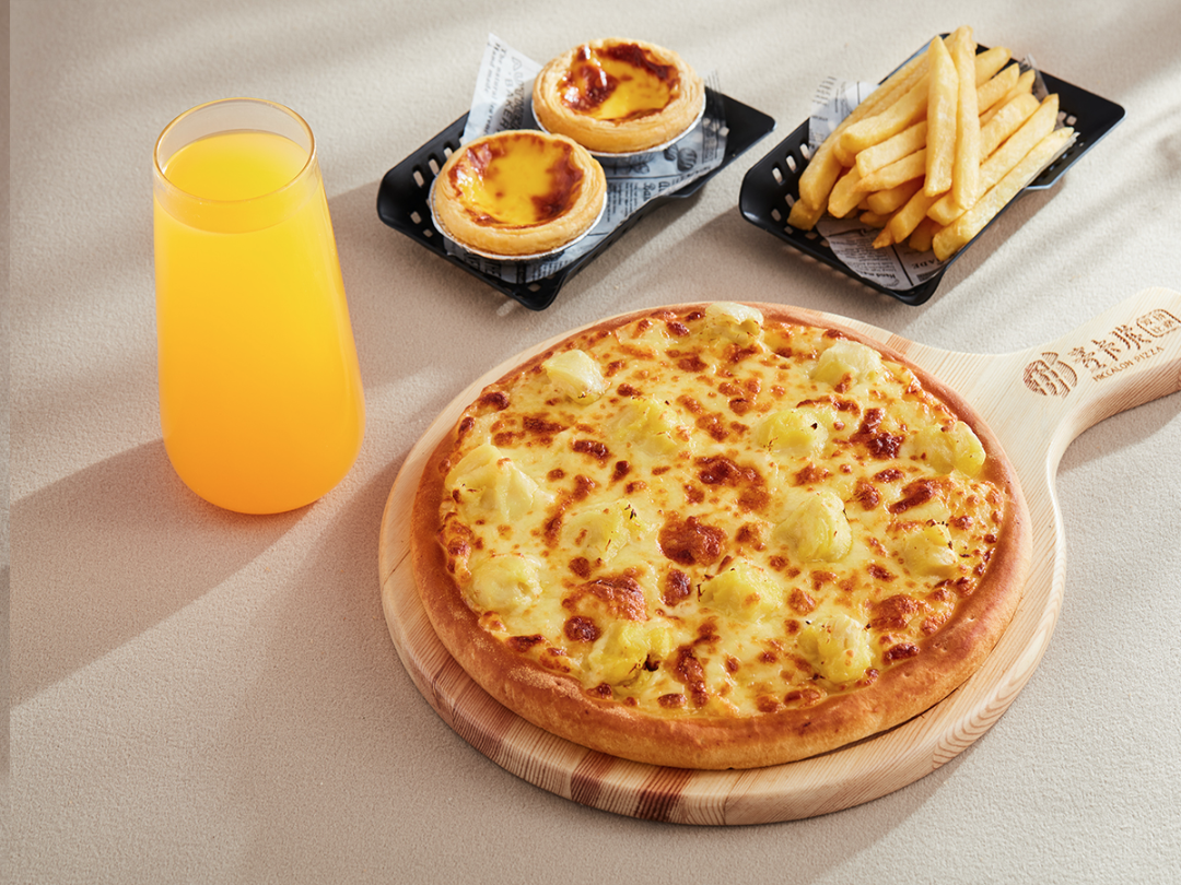 榴莲爱好者狂喜‼️平时一杯咖啡钱,就能享受到3A级7英寸金枕榴莲比萨+原味蛋挞1对+原味薯条+橙C整个套餐!这谁忍得了!