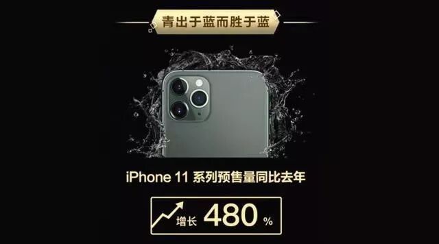 数据显示,预售当晚天猫一分钟成交破亿,iPhone 11 Pro 暗夜绿直接被抢空,苹果官方旗舰店不得不补货4次。