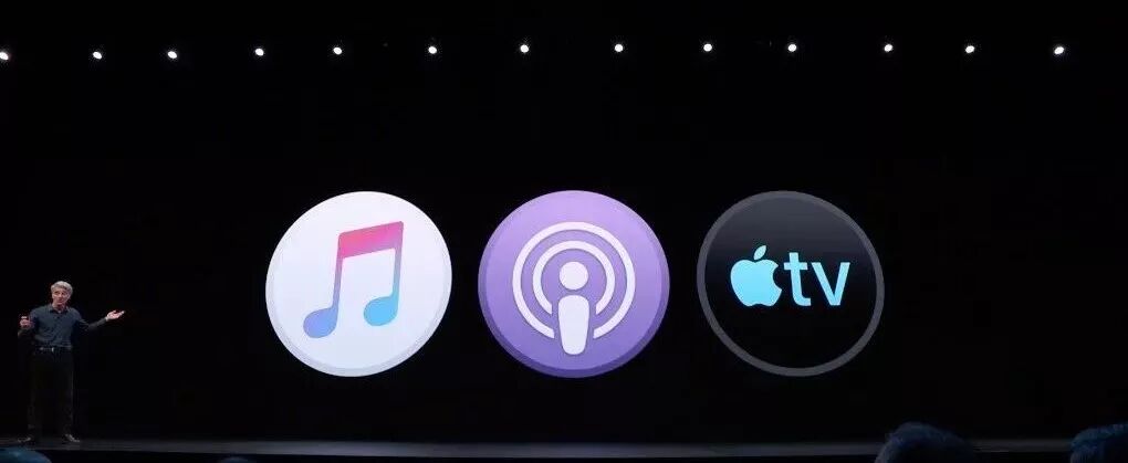 苹果自嘲了一波 iTunes 太臃肿,so...iTunes 被分成了 Apple Music、播客、Apple TV 三款 App。