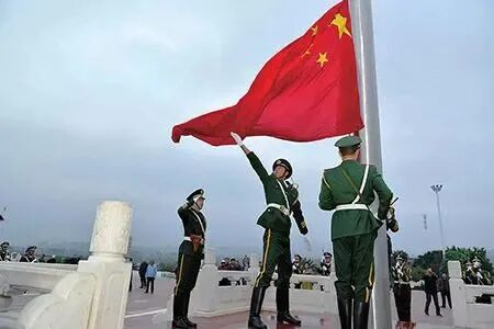 注目苒苒升起的庄重鲜艳的五星红旗,