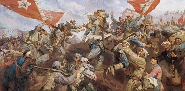 或者《长征组歌·大会师》:红旗飘,军号响,战马吼,歌声亮, 铁流两万五千里, 红军威名天下扬……