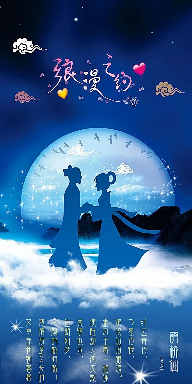 夜空星际真情涌,天河鹊桥挚爱诵。