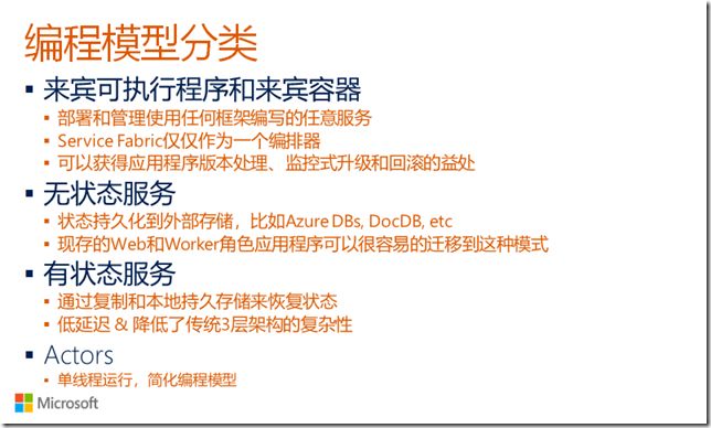 同时,不要忘了Service Fabric Native除了可以编排容器以外,还可以编排在进程中跑的服务。因为并不是所有应用都能顺利容器化(技术限制和法律限制(我就遇到过)),在这种情况下,如果你不想入侵代码就用来宾可执行程序,或者稍作改动使用可靠服务。