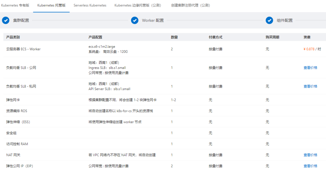 首先,需要到阿里云上创建一个k8s集群,创建的选项截图如下: