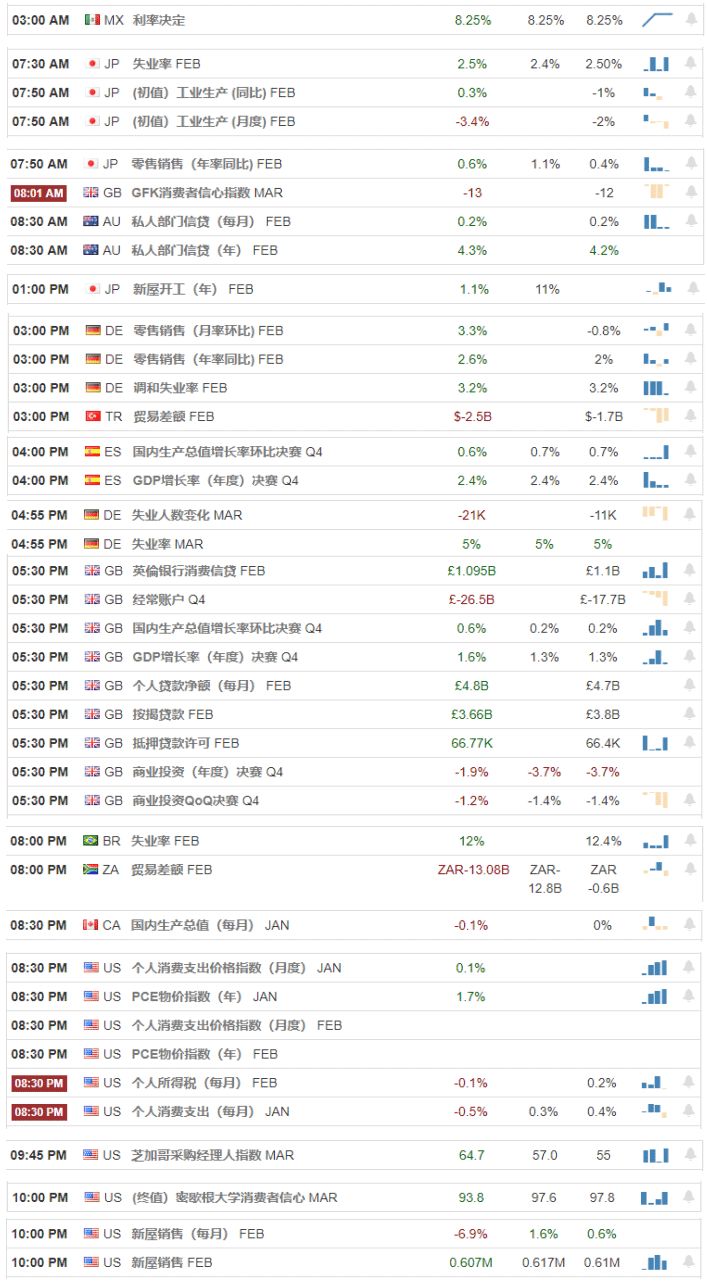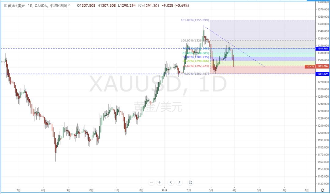 2019-03-28 01:00 PM 德国(初值)通货膨胀率(同比) 1.3% ,目前整体数据在弱势阶段,短期属于利空。