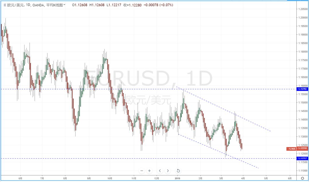 2019-03-28 10:00 AM 欧元区商业信心指数 0.53,目前数据依然在下滑阶段,属于利空。
