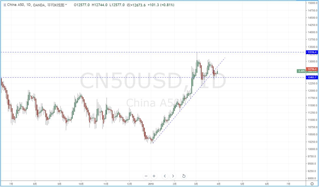A50指数天图:目前整体趋势在高位区间受阻,短期有跌破上升趋势线。但目前继续在高位区间整理,上方水平压制带在13084.0附近。下方水平支撑带在12453.7一带。近期波爱吃观望等待市场有效测试。