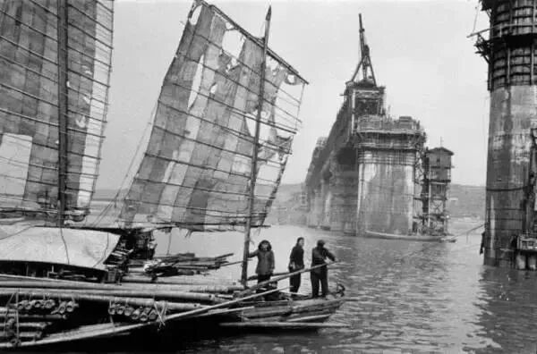 我读书的小学在著名的二七纪念馆旁边。我在这里从幼儿园、小学一直读到初二,总共待了九年。我们的校园很大,有好几处果园,那是我们最珍视的地方。我少年时代所有的痛苦和欢乐几乎都在这里发生。我在这里最风光的事是小学二年级我便加入了学校的火炬艺术团,我是全团最小的一个舞蹈演员。我跳舞一直跳到了初三,然后改学了扬琴。我在学校里一直是个名人。我最初的文学创作也是由这里开始。那是小学三年级的时候,我写下了我人生的第一首诗。老师为此作了一次家访,她大大地表扬了我。十几年后,我终于发表了我的处女作,那就是一首诗。我总也忘不了老师对我母亲大声表扬我时的神情。在课余时,我们经常到二七纪念馆去玩。那里的松柏郁郁葱葱,走到近处,我们就无法嘻闹。二七大罢工,是这座城市非常重要的历史事件。上小学的时候,我见过许多亲自参加大罢工的人。他们对我们讲述林祥谦和施洋的故事。那些英雄的往事,曾经让我热泪盈眶。不记得是几年级了,我和几个同学埋了一张纸条在二七纪念馆中央一个最大的柏树下,纸条上写着我们的理想,大家相约二十年后再找出这纸条,看看自己的理想实现了没有。我不记得我在纸条上写下的是什么,我只记得少年时代的我最想当的是一名解放军记者。这个理想看来也是永远无法实现的了。二十年早就过去了,我们没能回来找那张纸条,二七纪念馆也搬离到了别处。大柏树亦不见踪影。我就读的新村小学,后来改名叫作林祥谦学校,现在又改了回来。只是英雄们还活在我们心中。当年那些老工人讲解罢工过程的神态,在我心里依然清晰可见。从我居住的地方,沿着一条路,我们可以一直走到长江边上。当年那是一条小土路,一路的沿边都是青绿的菜园,菜园里有碉堡和三座坟墓。从我家出发,走路大约需要二十分钟时间就能看到长江了。长江从武汉穿心而过,它在龟山脚下挟带着汉水一起,将武汉的地面流切割成为三个大镇:汉口、武昌、汉阳。汉口在北岸,它是著名的商业大镇,大的商场都在汉口,当年武昌的人买件衣服都得搭着船到汉口来买;武昌是文化镇,几乎所有的大学都集中在武昌;汉阳则是工业镇,武汉最老的工厂都在汉阳。这样的格局也不知道是什么人划分的。三大镇皆临江而立,随江流而曲折。因为这个缘故,武汉人是没有什么东南西北的方向感的。徜若有人问路,武汉人的回答多半都是“往上走”或“往下走”。上,便是指长江上游方向,下则是指下游方向。江水对武汉人的影响深刻到了骨髓,既便是人们随意的一指,也无不透视着水流的意味。武汉人的性格也就有点像水流一样,无拘无束,自由而散漫。武汉不像北京南京西安曾为国都,因而它也从未成为过中国政治文化的中心,它自古便是商业都市;可它偏偏又不像上海广州天津一样,它们虽然也是商业城市,可却因为临近海岸,受西方文化熏染深重,武汉地处内陆深处,洋风一路吹刮到此,已是强弩之末。所以武汉的文化带有强烈的本乡本土的味道,它和弥漫在市井的商业俗气混杂一起,便格外给人一种土俗土俗的感觉。但幸亏有了长江。是长江使这座城市充满了一股天然的雄浑大气。这股大气,或多或少冲淡了武汉的土俗,它甚至使得生长于此的武汉人也充满阳刚。他们豪放而直爽,说话高声武气,颇有北方人的气韵。是长江使武汉这座城市的胸襟变得深厚和宽广;是长江给武汉的文化注入了品味,从某种意义上讲,也是长江,塑造了武汉人的性格。这些武汉人中,也包括我。小的时候,我常常跟着哥哥们来长江里游泳。我的大哥和二哥把我背在背上向深水处游去,长江的水浪便从我的背上刮过,那种感觉,现在还是那么清晰地留在我的记忆之中。我的游泳技能是在长江里学会的,而不是在游泳池,这使我有一种特别的自豪感。我的三个哥哥都喜欢横渡长江,他们常常带着一个汽车轮胎便在江水里游来游去。从江北游到江南,曾经也是我的一个梦想,记得读高中时,学校参加市里组织的横渡长江活动,我立即报了名,可惜那一年,我们学校没有女生名额,于是,横渡长江便成了我一个永远的梦想了。我常常想,我对长江的热爱是与生俱来的。仿佛根本不需要说,这份热爱就一直在我心里生长。1957年,汉口,由苏联援建的汉口长江大桥正在施工。马克•吕布/摄。其实,武汉的历史,就是人与水斗争的历史。是人进水退的历史。武汉人外战江洪,内战湖涝,经年已久。这场斗争到现在仍然没有结束。与水争地,在水中筑土为墩,所以武汉遍布以墩为名的地址;遇水架桥,水退过后,地名尚在,所以武汉也满是以桥为名的地方;因洪筑堤,为防江洪泛滥,沿江沿河只能修堤挡水,所以武汉以堤为名的街道也比比皆是。武汉最大的创痛也来自水。1931年的大水给武汉带来的灾难,足以让武汉人生生世世不敢忘记。它在一夜间令几十万人四乡流落,也在一夜间使武汉的山头变成孤岛,它使城里的屋顶有如海上浮漂的枯叶,也使市民一天死亡的人数量数以千计。水落之后的武汉,面对一派颓败的废墟,挽走衣袖,重建家园。于是,几年后,武汉重新回到了它的繁华。武汉最古老的街道叫长堤街。长堤街位于汉口。长堤街就像是一幅大画的轴心,武汉的城市画面从它这儿拉起,慢慢地慢慢地舒展开来。于是,它有了后来的民主路,有了江汉路,有了民众乐园,有了解放大道,有了建设大