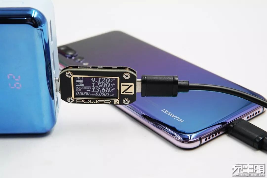 充华为P20 Pro,电压9.12V,电流1.5A,功率13.68W,开启PD快充。