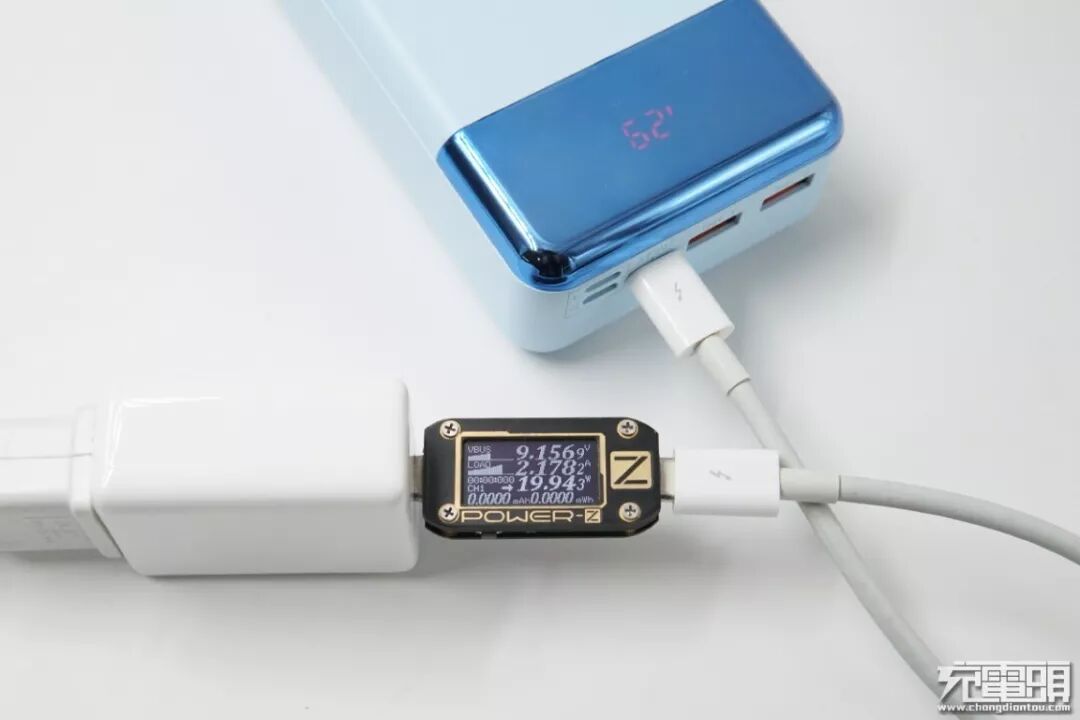 使用锤子18W QC4+充电器充羽博移动电源(Lightning口),电压9.15V,电流2.17A,功率19.94W,开启PD快充。