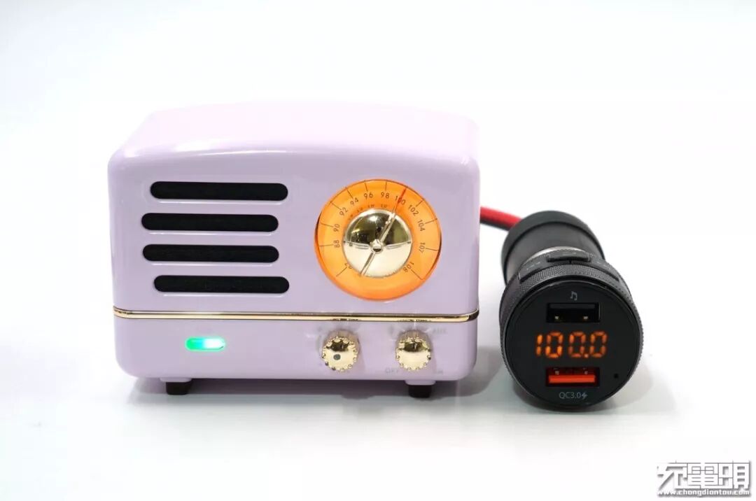 小编找来一个小型收音机模拟车机使用场合,把先科AY-M97多功能车载蓝牙播放器与收音机设定到相同的频率上,这里选取100.0MHz。