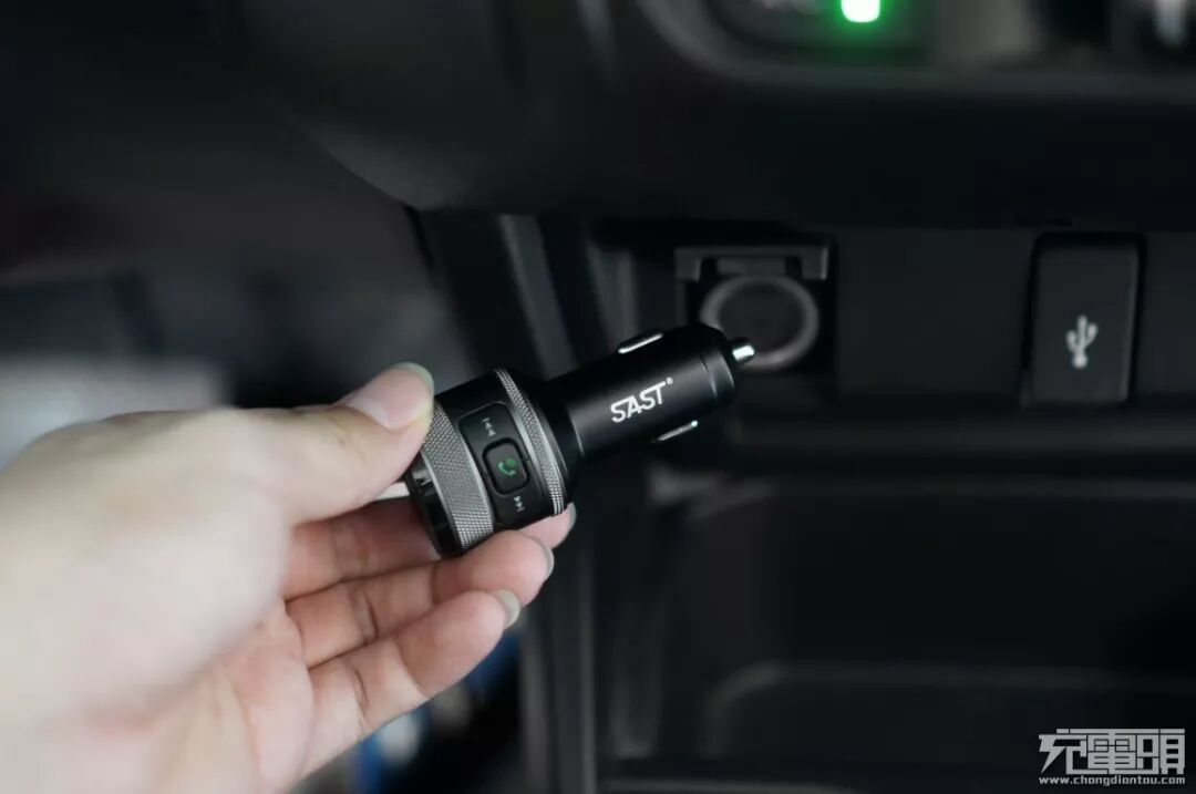 先科AY-M97多功能车载蓝牙播放器实际使用效果如何?我们移步到汽车上,也就是这款产品的实际使用场景。首先拔出原车的点烟器,把先科蓝牙播放器插入到汽车点烟器接口上。