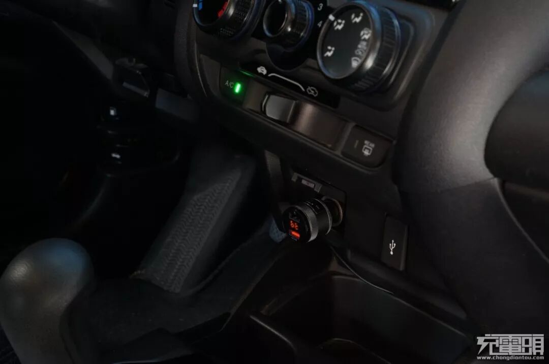 黑色硬朗的设计风格让车充融入到汽车中控台氛围当中,浑然一体。