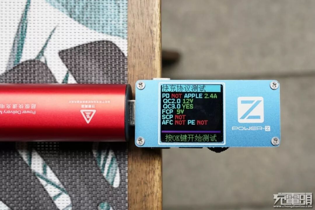 使用ChargerLab POWER-Z FL001S检测到USB-C支持的协议有USB PD、QC3.0/2.0、FCP。