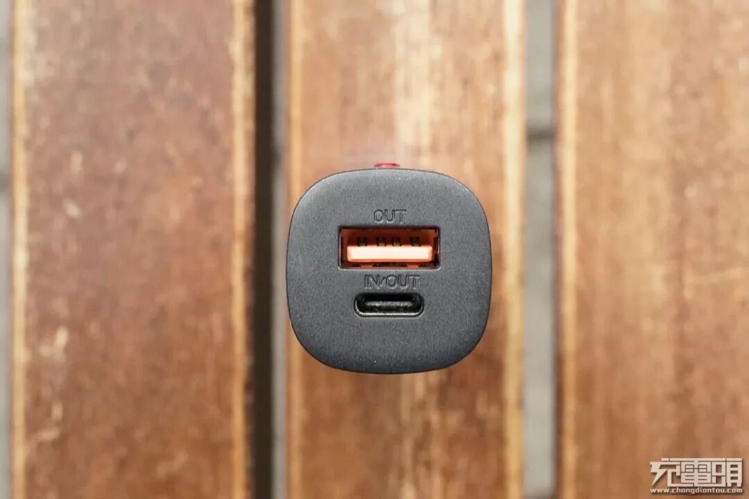移动电源具备一个USB-A输出接口和一个USB-C接口,USB-C支持输入/输出。