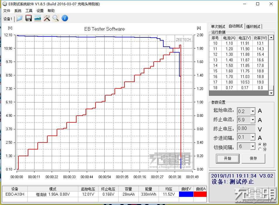 USB-C接口12V档位下最大输出1.75V/1.60A/18.8W。