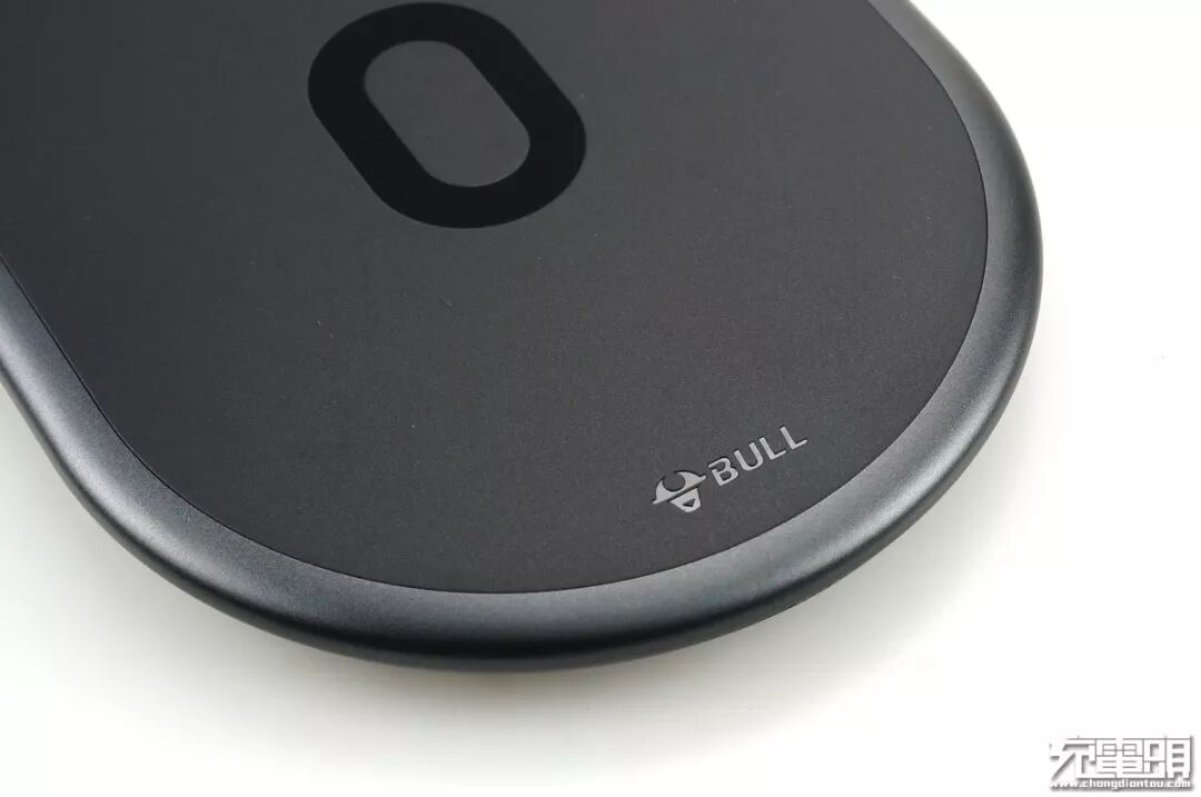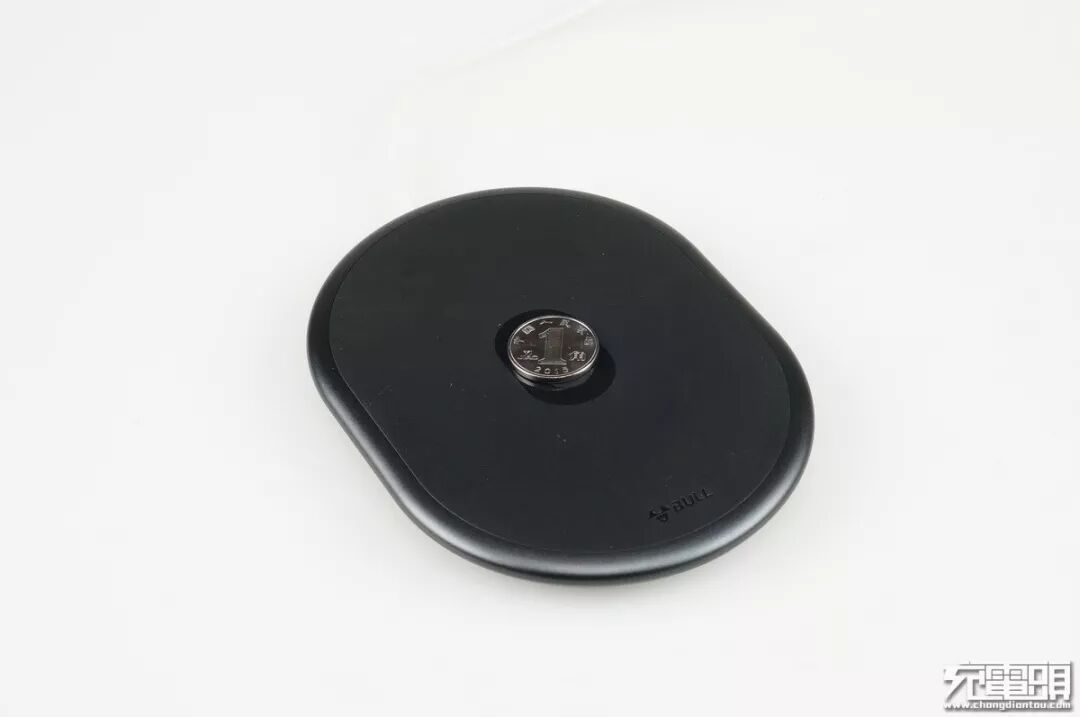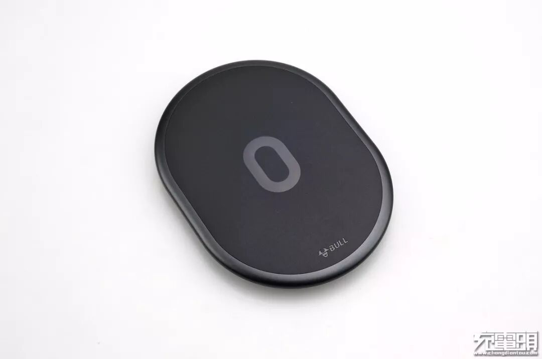 公牛无线充电器产品尺寸为120mm x 90mm x12mm,整体呈椭圆形。