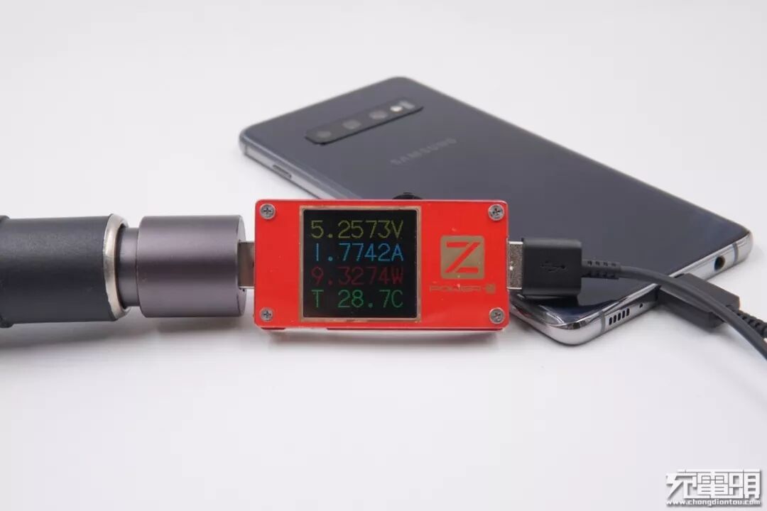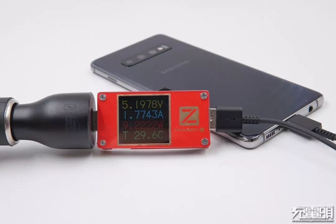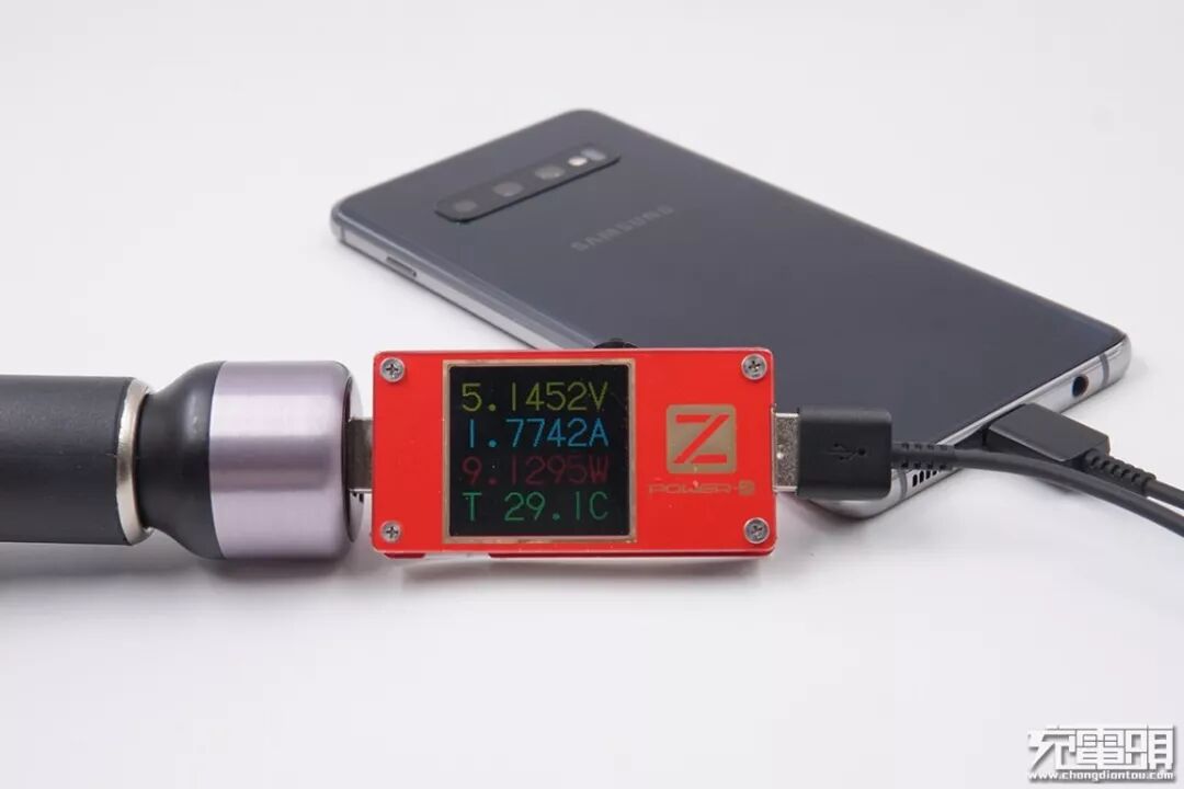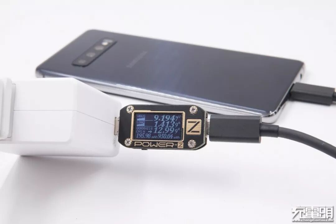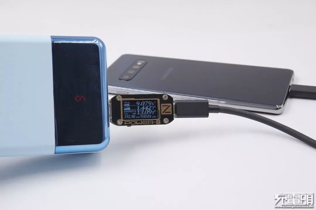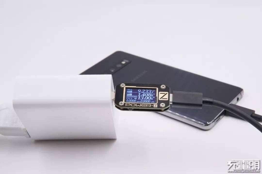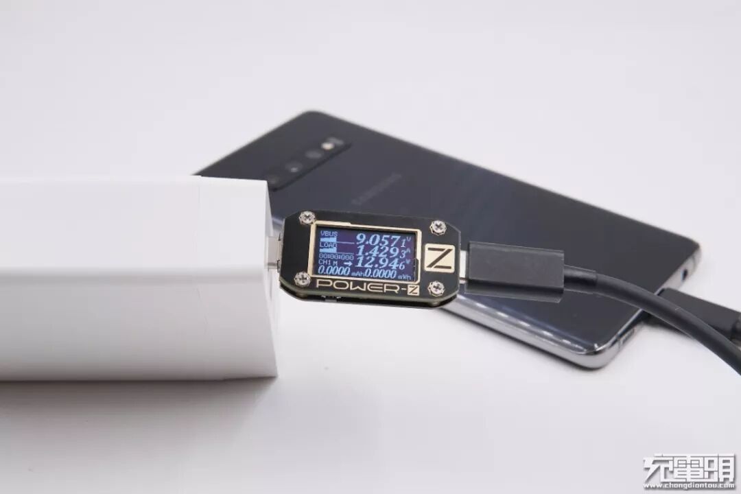 锤子(CD106)充电器,18W功率,支持QC4+快充协议(简单来说,QC4+快充=USB PD 3.0PPS+QC 3.0),充三星S10+,电压9.19V,电流1.41A,功率12.96W,开启PD快充。
