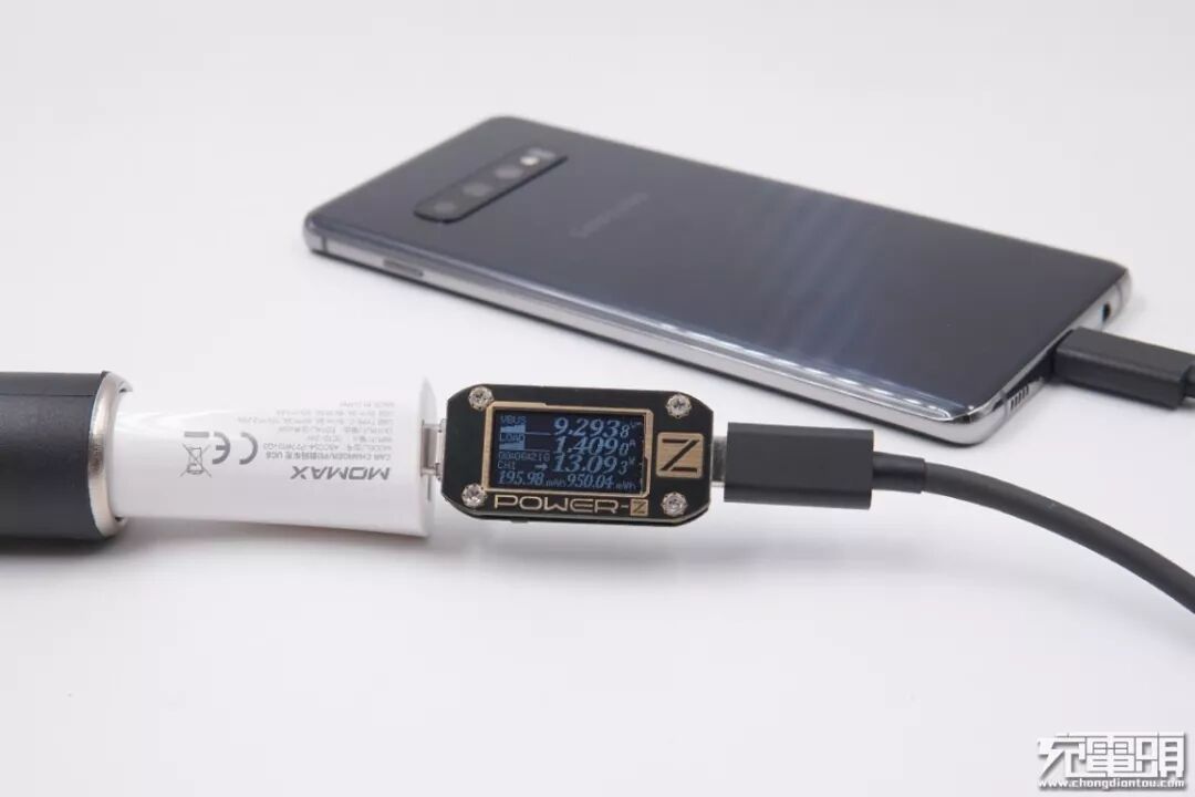 MOMAX摩米士(FJ-SW618CC)充电器,18W功率,支持PD快充协议,充三星S10+ 5,电压9.24V,电流1.4A,功率12.99W,开启PD快充。