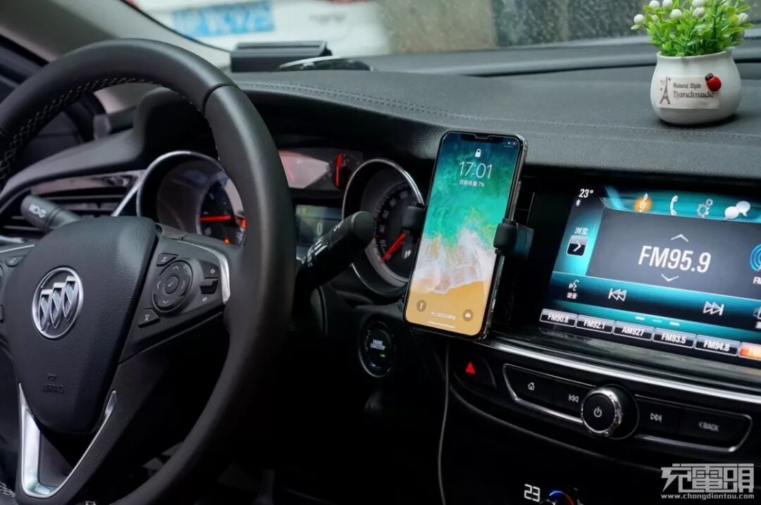滚轮与弹力夹臂的设计,可以很轻松的单手放入或取下手机,方便快捷。iPhone Xs Max放上去的瞬间就开始无线充电,握手apple 7.5W无线快充。