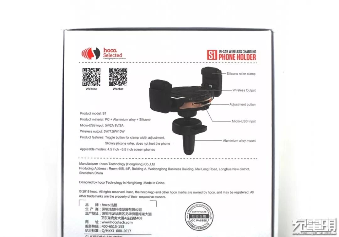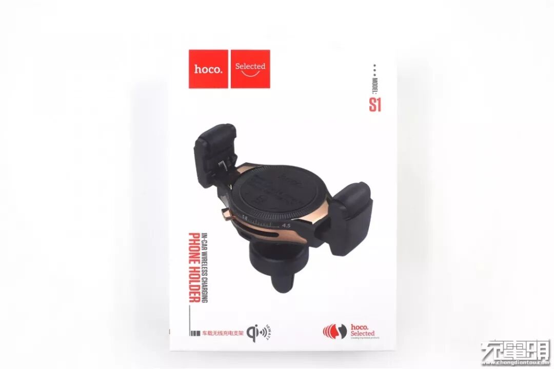 包装盒右侧:S1手机无线充车载支架。