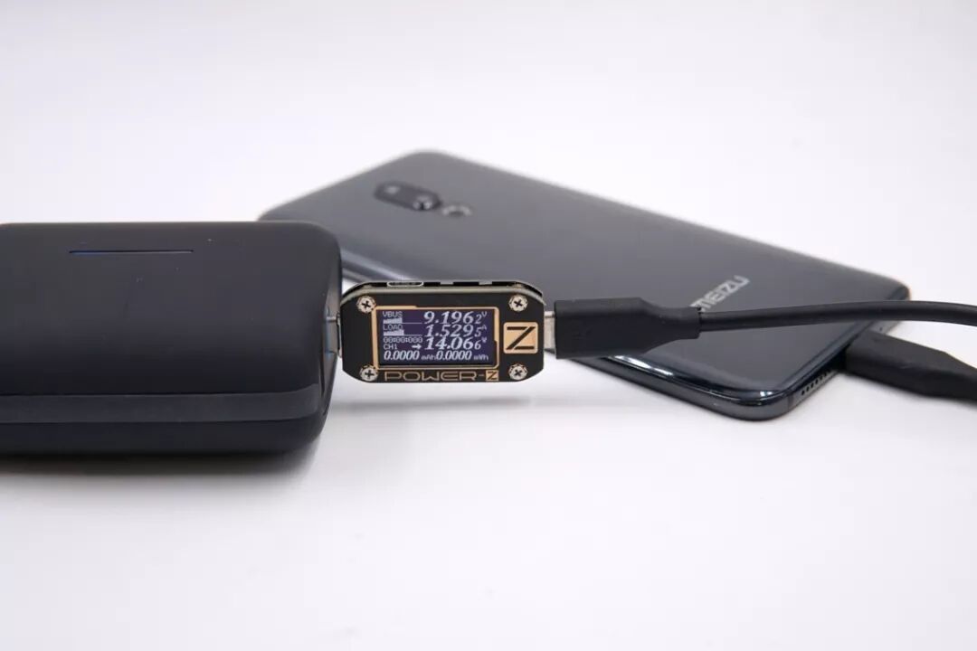 USB-C口给魅族16th Plus充电,电压9.19V,电流1.52A,功率14.06W,开启MTK PE快充。