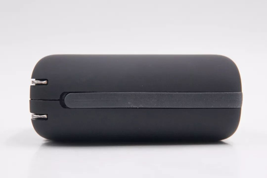 移动电源基本呈椭圆柱体,各面有倒圆角,造型圆润,握持舒适。