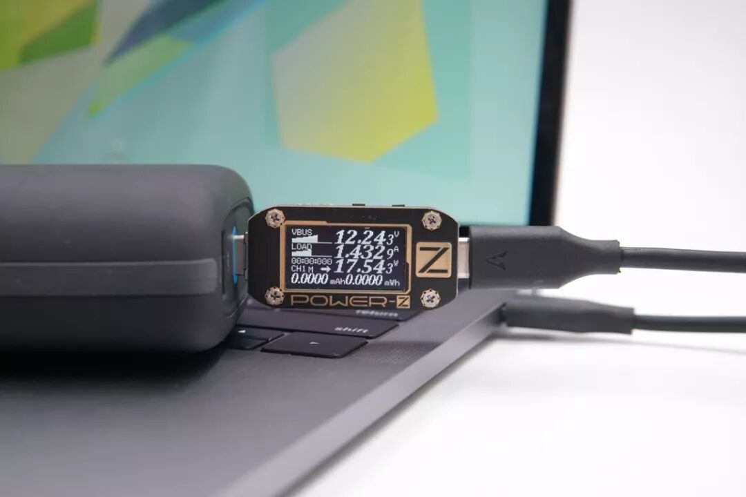 另外,USB-C口给Thinkpad X1充电,电压12.41V,电流1.36A,功率16.99W,可以开启PD快充。