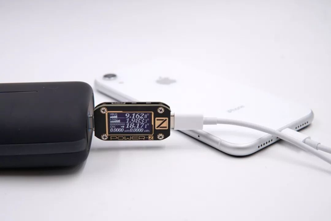 USB-C口给iPhone XR充电,电压9.16V,电流1.98A,功率18.17W,开启PD快充。