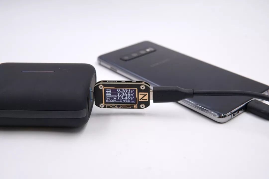 USB-C口给三星S10+充电,电压9.2V,电流1.46A,功率13.49W,开启PD快充。
