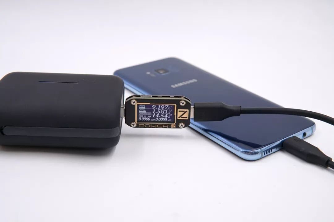 USB-C口给三星S8+充电,电压9.19V,电流1.58A,功率14.54W,开启PD快充。