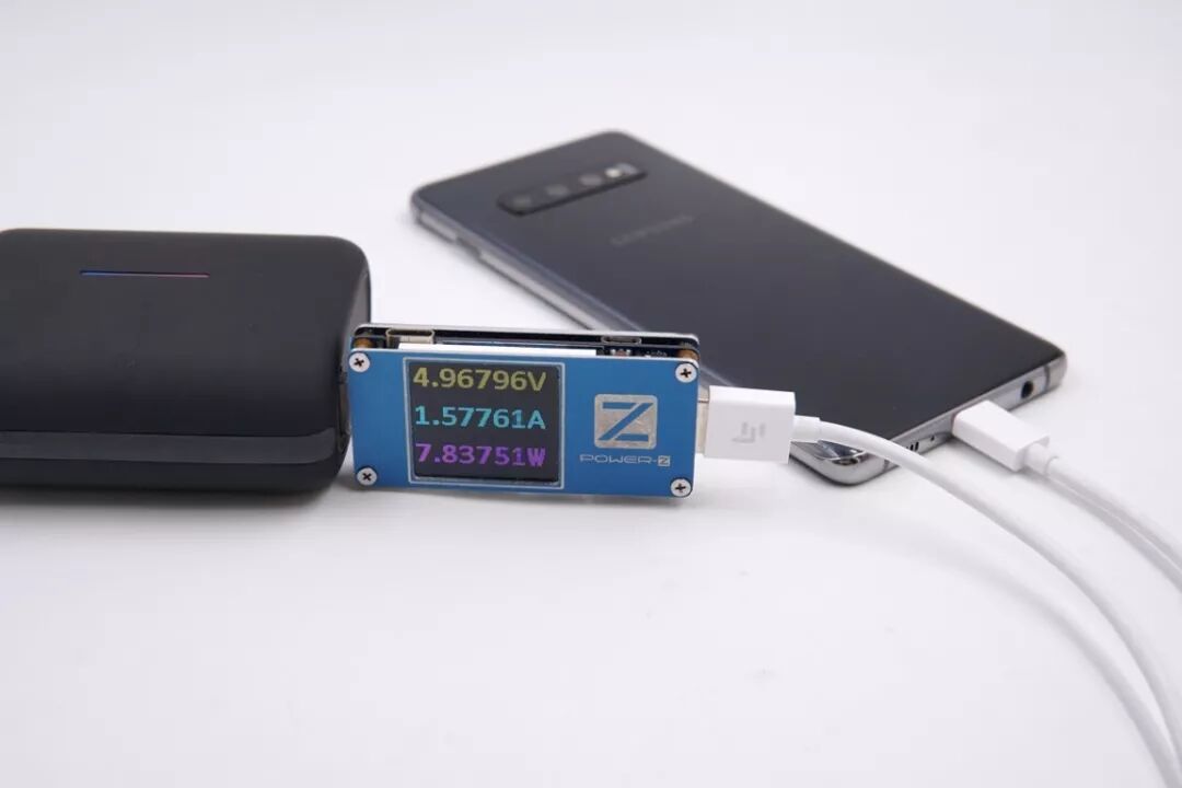USB-A口给三星S10+充电,电压4.96V,电流1.57A,功率7.83W,普通充电模式。