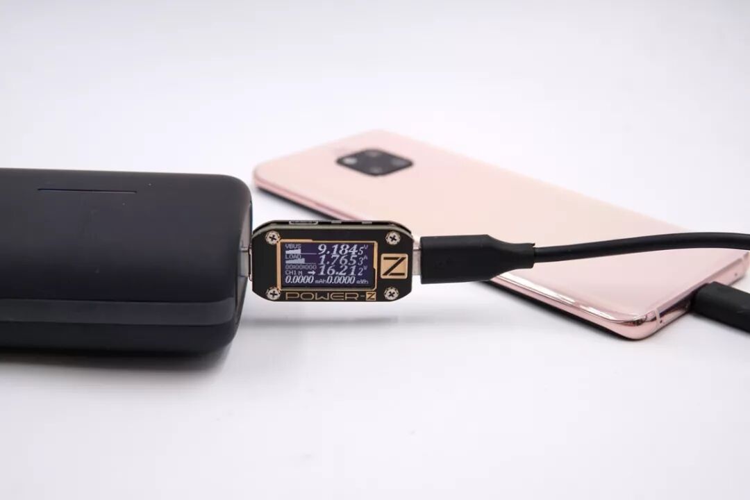 USB-C口给华为Mate 20 Pro充电,电压9.18V,电流1.76A,功率16.21W,开启PD快充。