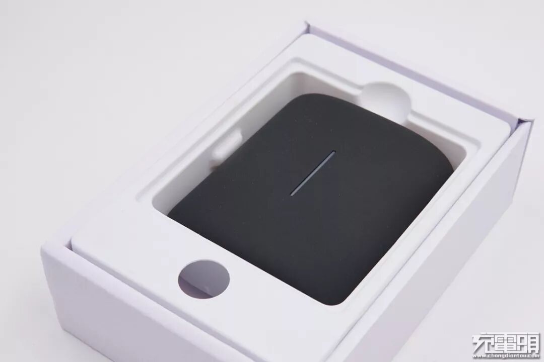 打开包装盒,拉出抽屉,本体显现在眼前。塑料托盘开有凹槽方便移动电源取出,托盘开的孔也方便将托盘与纸盒分离,取出内部的说明书。