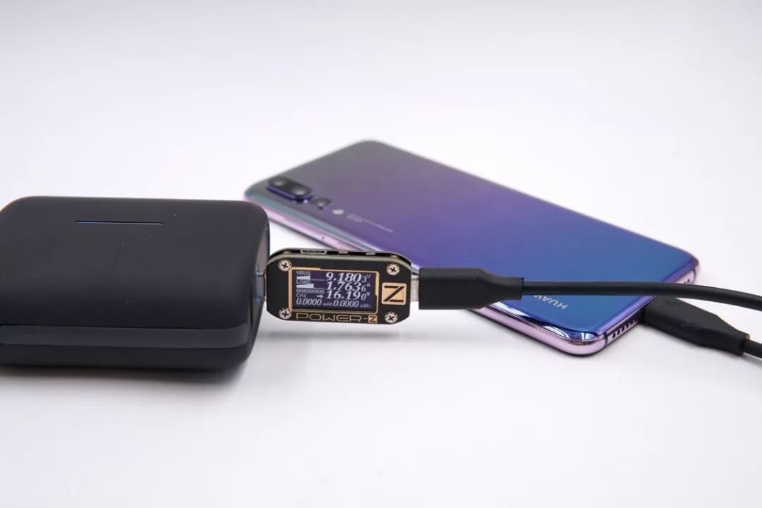 USB-C口给华为P20 Pro充电,电压9.18V,电流1.76A,功率16.19W,开启PD快充。